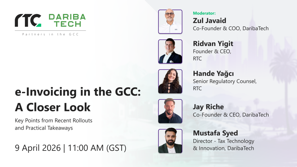 Join our joint webinar with Dariba for a closer look at the latest e-Invoicing rollouts across the GCC and what they mean in practice. We will highlight key regulatory updates, compare country approaches, and share practical takeaways to help you navigate this changing landscape. This webinar will give you the information you need to keep your operations efficient, future-proof, and compliant with regulations.